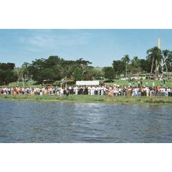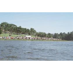 Panorâmica do abraço simbólico na represa Guarapiranga.