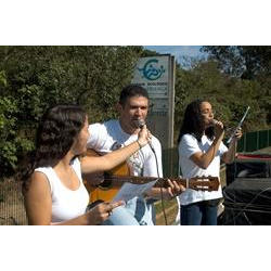 Artistas se apresentando momentos antes do abraço simbólico na represa Guarapiranga.