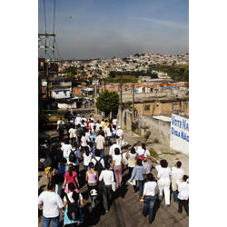 Padre Jaime Crowe, discursando momentos antes do abraço simbólico na represa Guarapiranga.